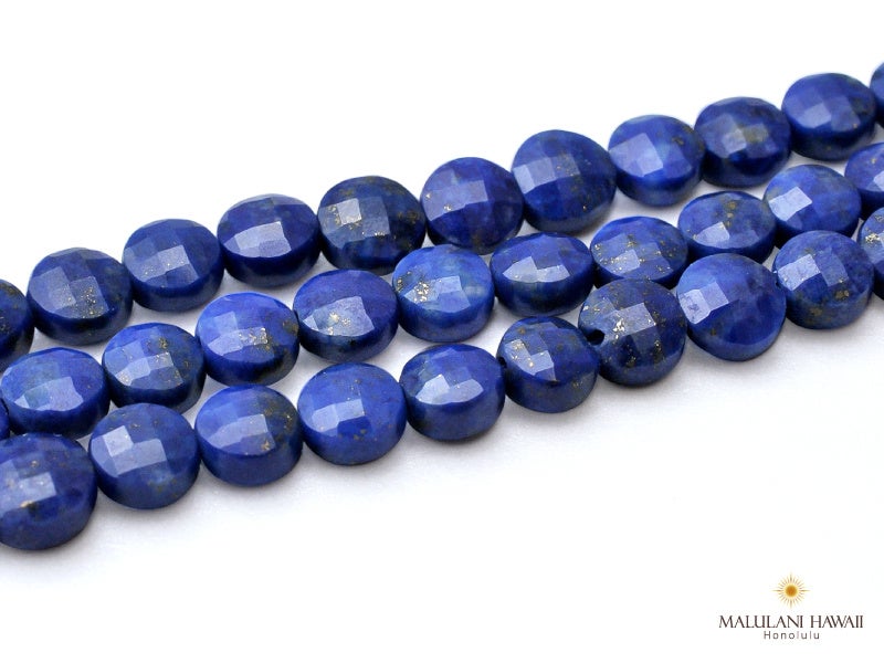 完成や調和、永遠を意味する丸いコイン型に、上質なカットを施したラピスラズリは、アクセサリーとしての存在感も優秀。