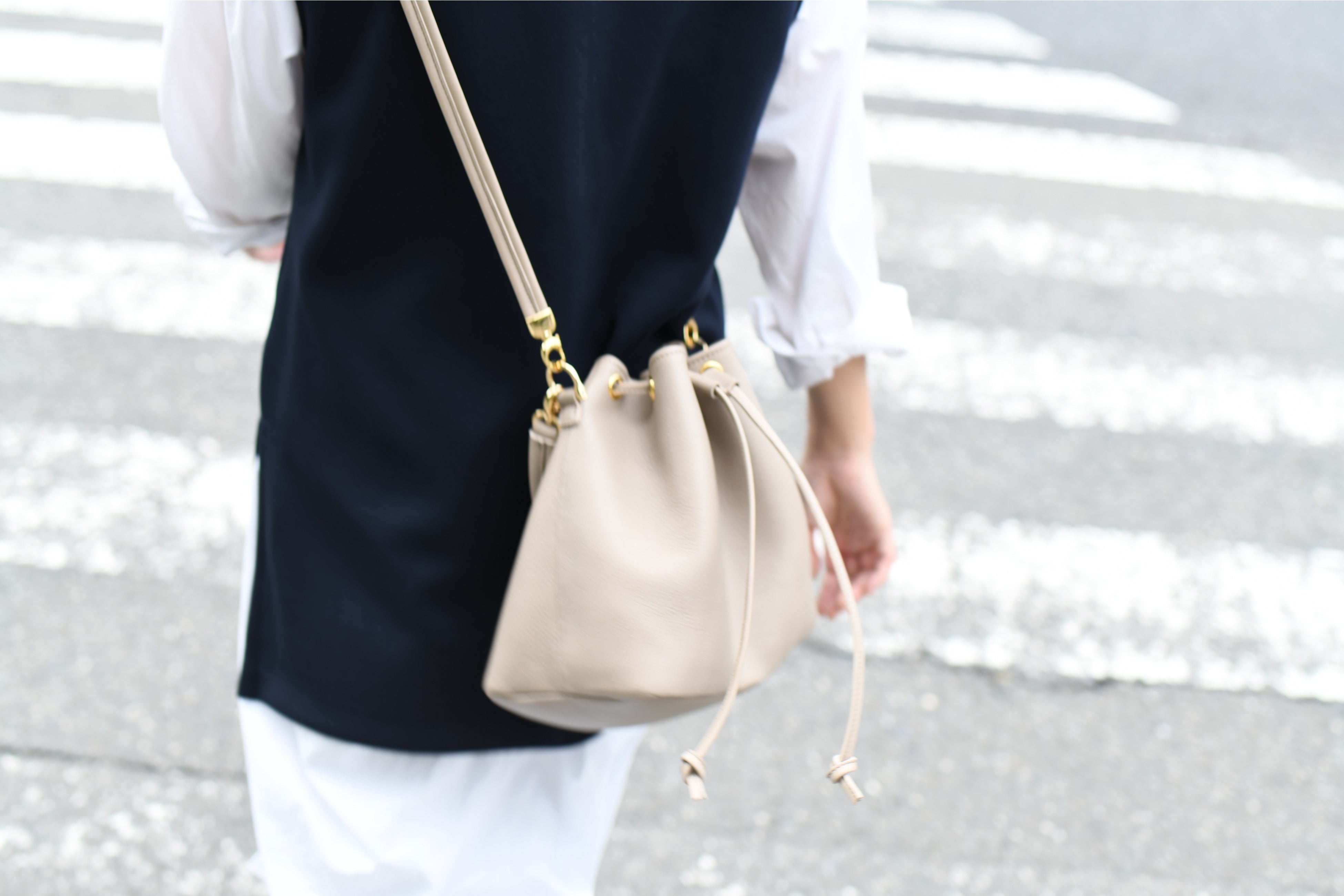 バッグの輪郭をつくるやわらかな曲線には、フリーハンドで引かれるからこその個性があります。
