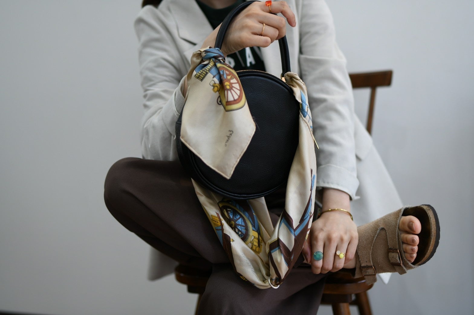 “憧れ”という意味をもつ、PAGOT第一号のバッグ。寸分違わず作られた円ではなく、感性で引いたフリーハンドの曲線から生まれる少し癖のあるデザインは、PAGOTのコンセプトである「不完全でちょうどいい」を象徴するものと言えるでしょう。一点一点がすべて手作りという世界にただ一つの特別感と相まって、圧倒的な存在感を放つAdoreは、幅広い世代の方から愛されるPAGOTのアイコンバッグです。