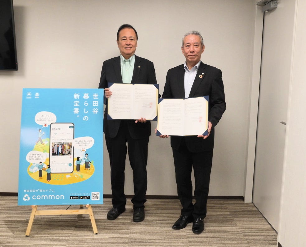 当社と世田谷区は、2025年6月19日に「地域コミュニティアプリ『common』を用いた連携に関する協定」(以下、本協定)を締結しました。本協定により世田谷区は、当社が開発・運営するアプリ「common(以下、本サービス)」を区民に向けた地区に関する情報発信ツールとして導入することで、区民のまちづくりへの参加と協働の促進及びコミュニティの活性化を目指します。