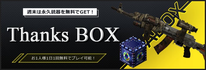 「Thansk BOX」から入手できる銃器のほとんどが「合成」を行うことが可能であり、同期間開催中の「AVAれ放題祭」で入手した銃器と組み合わせて更に強化することが可能となっております。週末にAVAをプレイする際は必ず「Thanks BOX」をプレイしましょう。