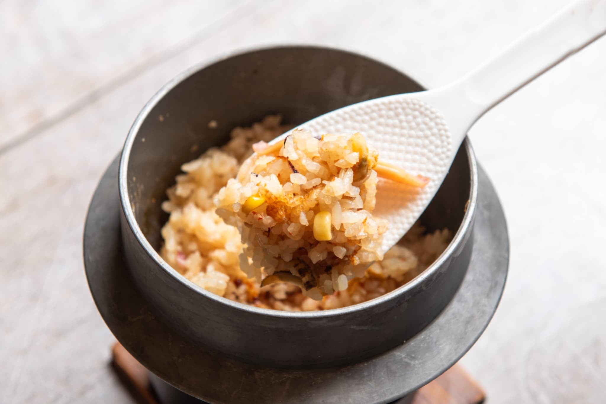 ・いかめし風「イカ・カニ・ホタテ・スイートコーンの釜めし」