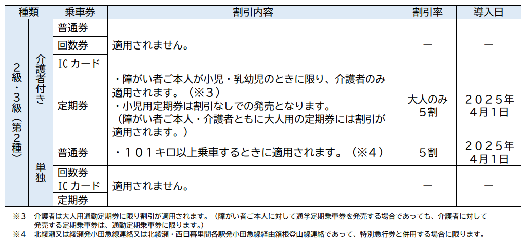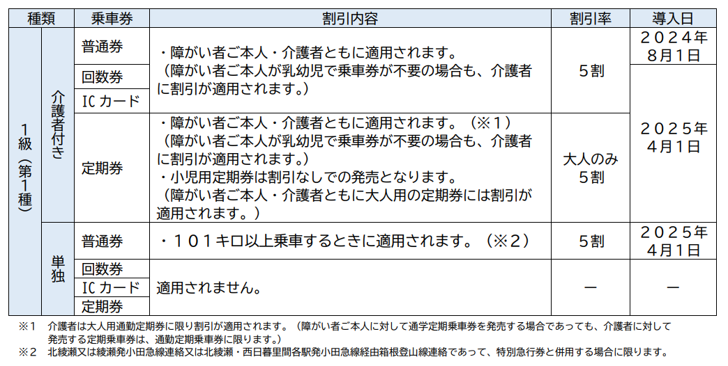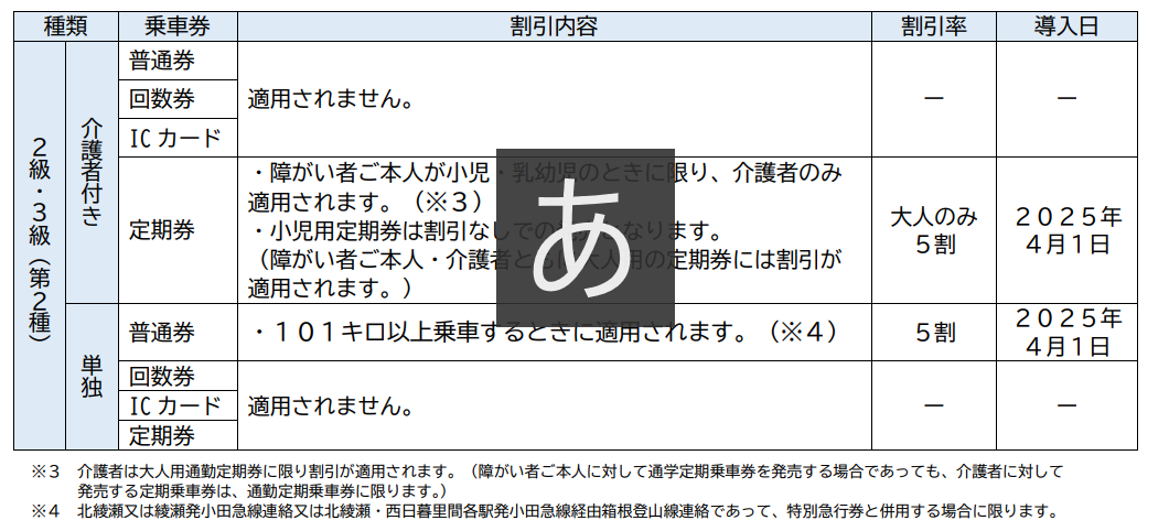 (旅客鉄道株式会社旅客運賃減額欄に第1種または第2種の記載のあるもの)