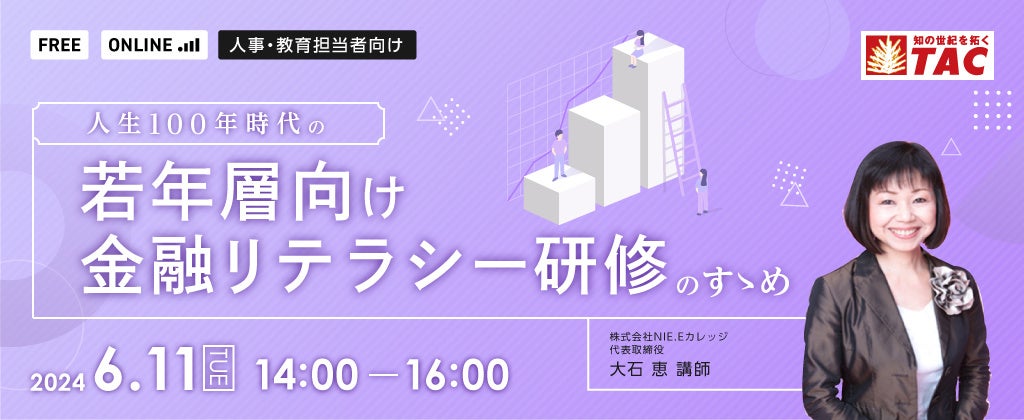 公認会計士や税理士など、多くの国家資格や検定試験の受験指導などの教育事業を展開しているTAC株式会社(東京都千代田区、代表取締役:多田敏男)は、法人向け人材教育部門から、人事・教育担当者に向け、若手社員向けの金融リテラシー教育について解説するセミナーを2024年6月11日(火)に実施します。