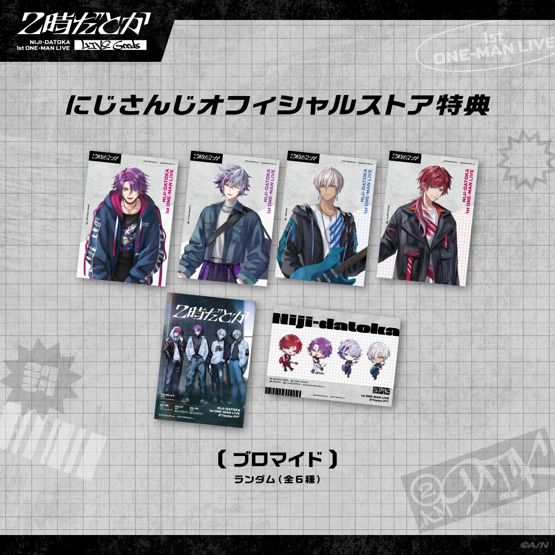 また、「2時だとか 1st ワンマンライブ」グッズは、本公演、Re-live公演にて当日販売の実施も決定しております!詳細につきましては順次にじさんじ公式X(https://x.com/nijisanji_app)、にじさんじ公式 イベント物販X(https://x.com/nijisanji_goods)、イベント特設公式サイト(https://www.nijisanji.jp/events/2jidatoka_1st)にてお知らせいたしますので、続報をお待ちください。