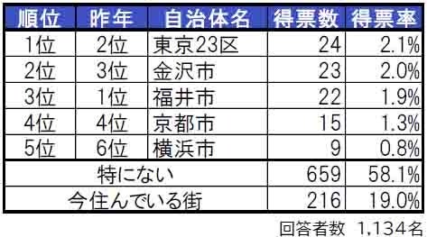 住みたい街は、1位東京23区、2位金沢市、3位福井市。