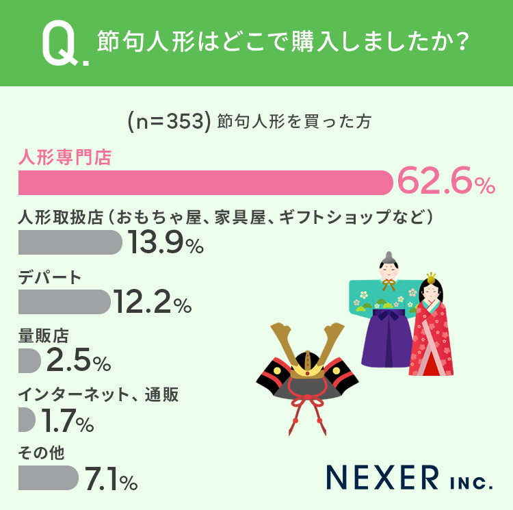 さらに、節句人形はどこで購入したのかも合わせて聞いてみました。