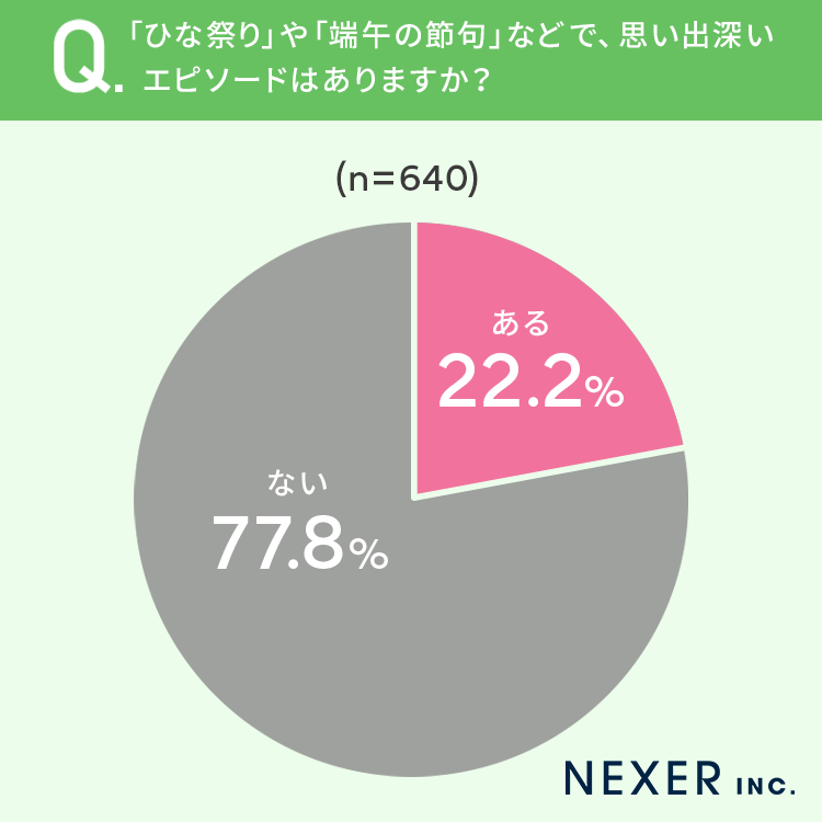 ■22.2%が「ひな祭り」や「端午の節句」などで、思い出深いエピソードが「ある」