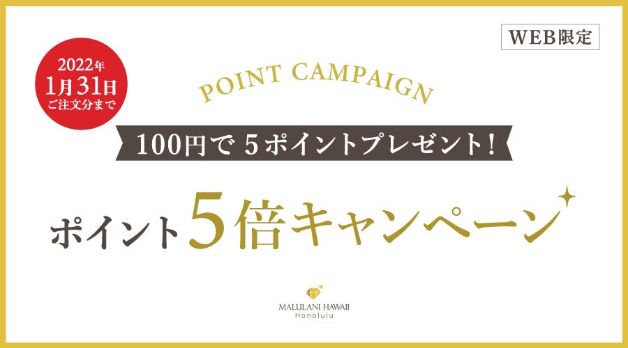 今だけポイント5倍! ハワイ発「マルラニハワイ」にて、Webショップ限定「ポイントアップキャンペーン」を開催いたします!