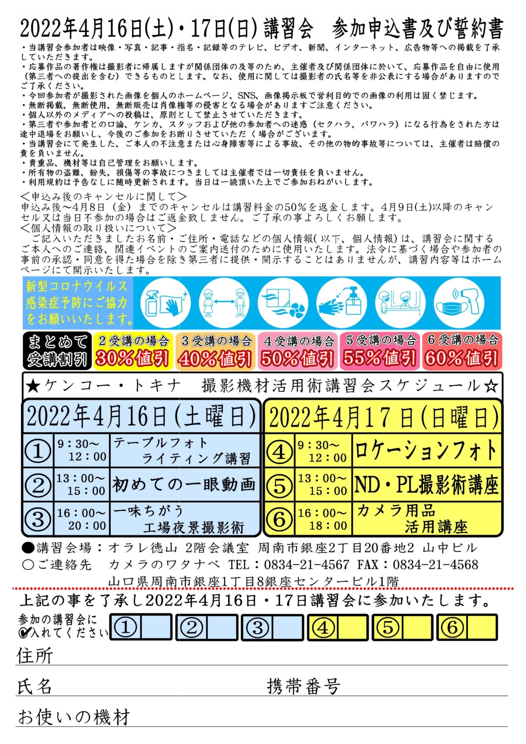 2022年4月16日(土)、17日(日)撮影用品テクニック講座(山口県周南市にて)