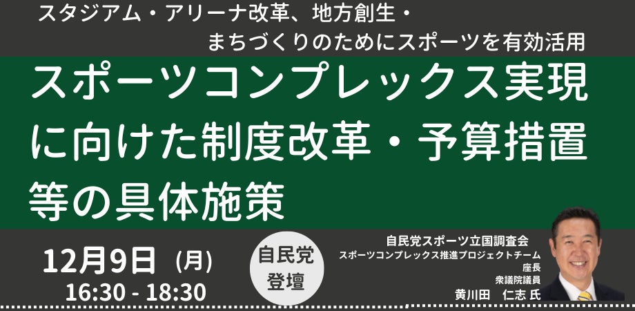【JPIセミナー】「スポーツコンプレックス実現に向けた制度改革・予算措置等の具体施策について」12月9日(月)開催