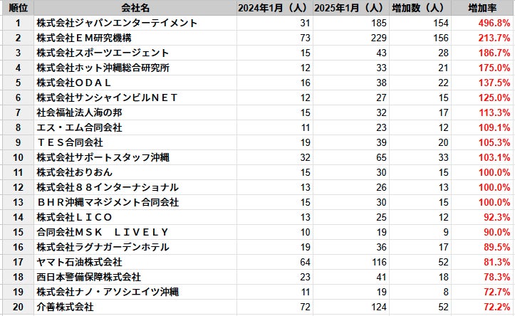 2025年版・沖縄県の従業員数増加率ランキングTOP20を発表!/SalesNow DBレポート