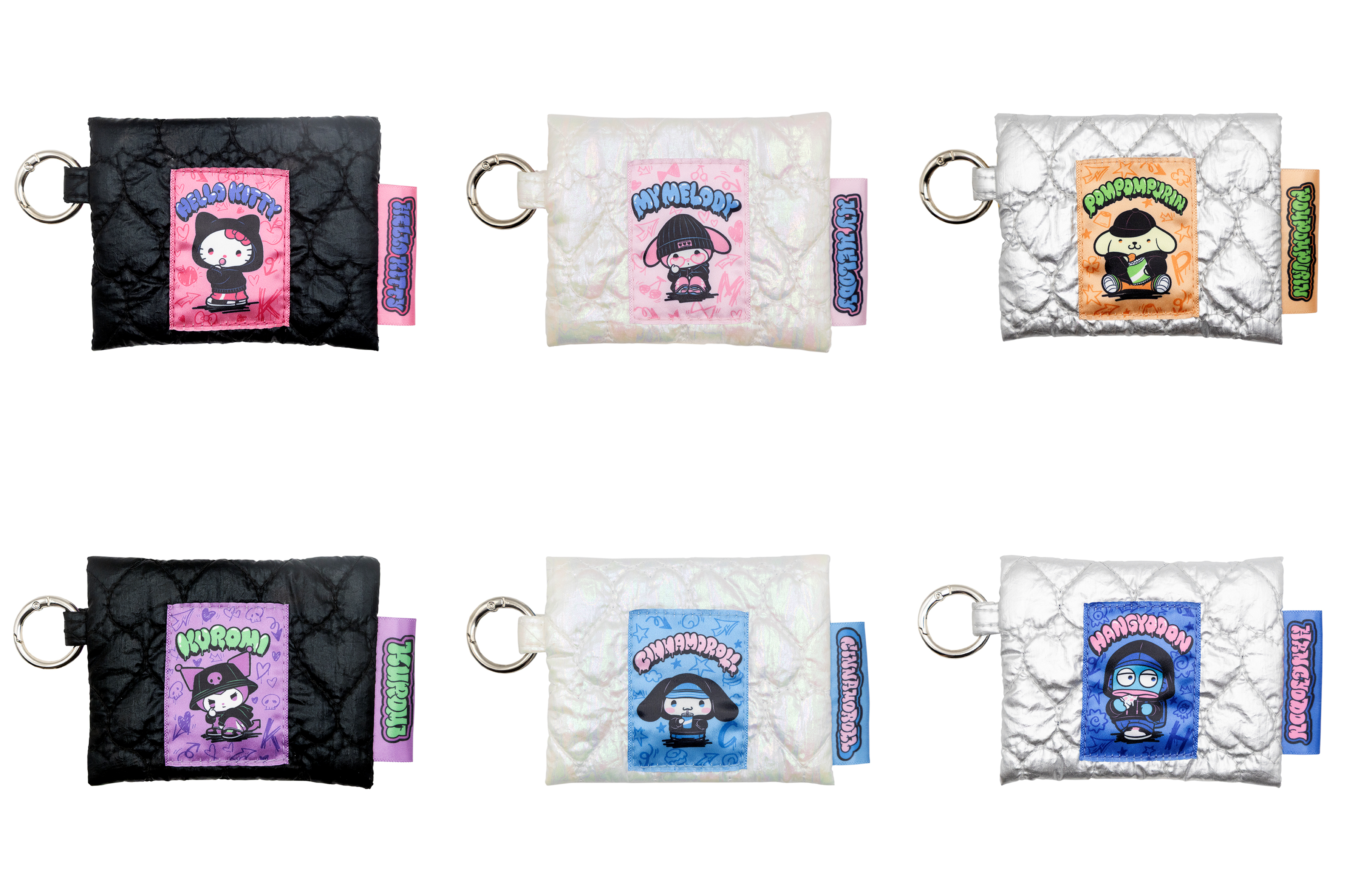 「ハローキティ」、「マイメロディ」、「ポムポムプリン」、「クロミ」、「シナモロール」、「ハンギョドン」の全6種類。