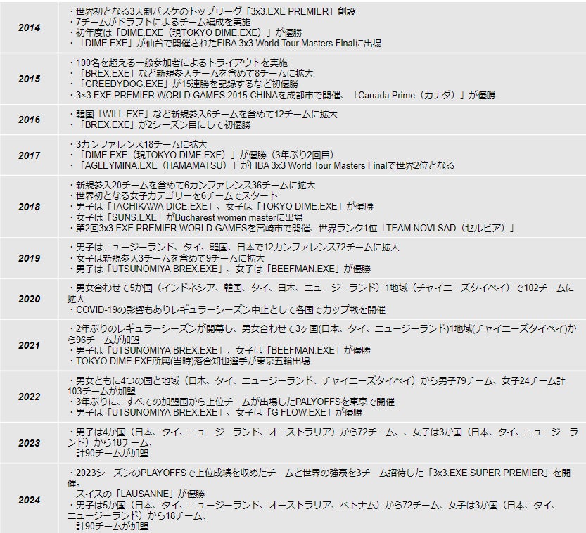 公式ホームページ:https://3x3exe.com/premier/、https://3x3exe.com/premier/playoffs2024-info/