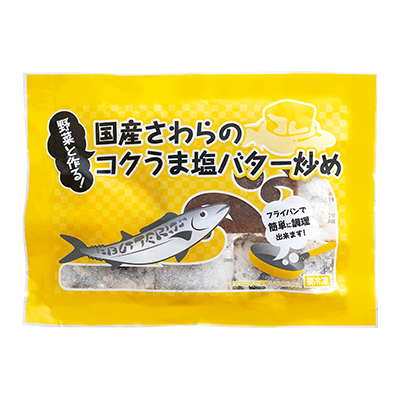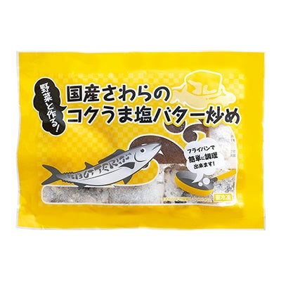 「野菜と作る!国産さわらのコクうま塩バター炒め」は、食べやすいサイズにカットした国産のサワラ6~7切を粉付けし、コクうま塩バターのたれとセットにしました。好みの野菜とフライパンで調理することで、野菜もとれる魚おかずが簡単にできます。パスタやうどんと合わせるなどアレンジも可能です。パッケージには、中学生の子どもでも調理ができるよう、分かりやすい調理方法を記載しました。