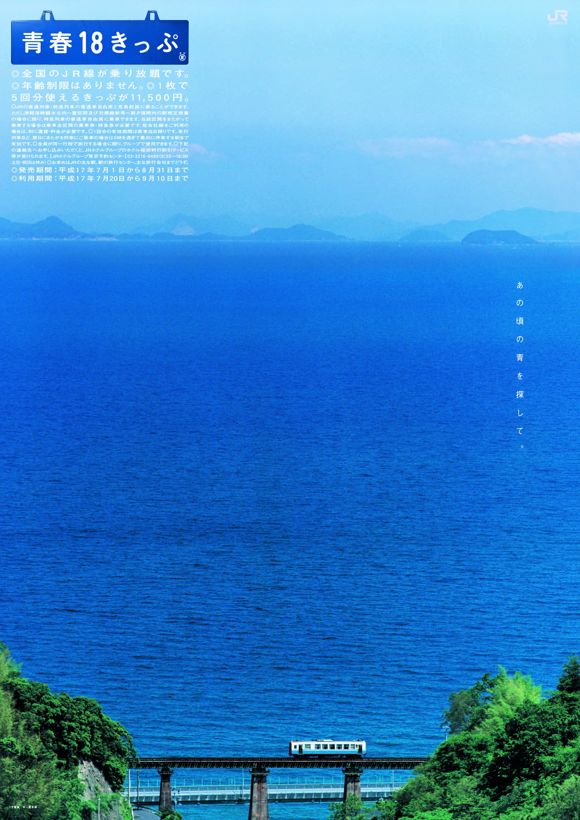 全国のJR線の普通・快速列車の普通車自由席、BRT(バス高速輸送システム)およびJR西日本宮島フェリーを連続する3日間または連続する5日間自由に乗り降りできるきっぷです。