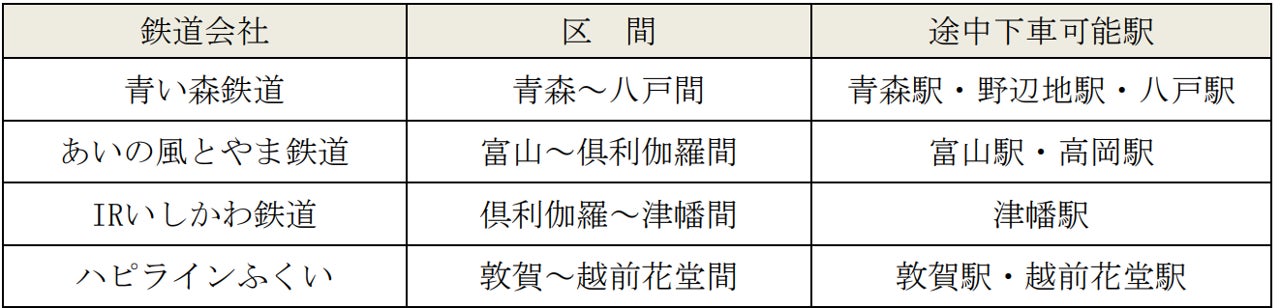 (2)道南いさりび鉄道線の各駅で下車した場合は、道南いさりび鉄道線全乗車区間の運賃が別に必要です(ただし木古内に限り途中下車が可能です)。また、北海道新幹線「新青森~木古内」間以外の区間にまたがって新幹線に乗車する場合は、新幹線の全乗車区間の運賃および料金が別に必要です。