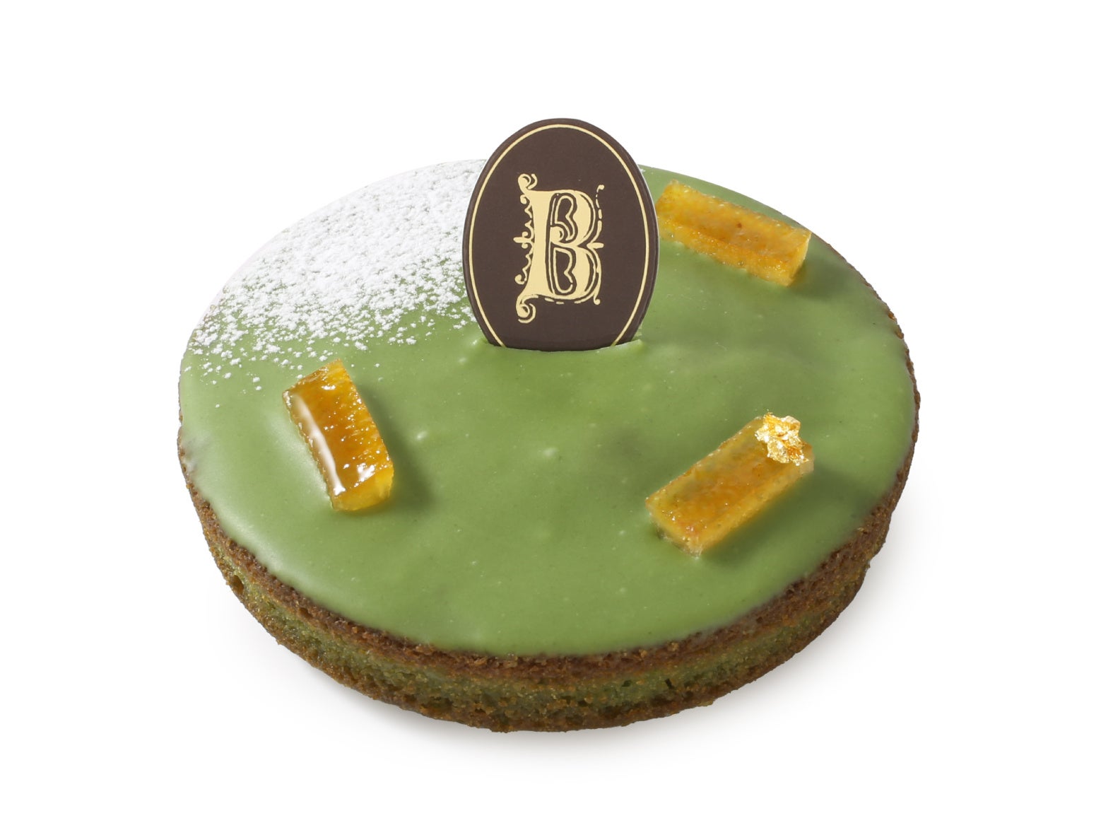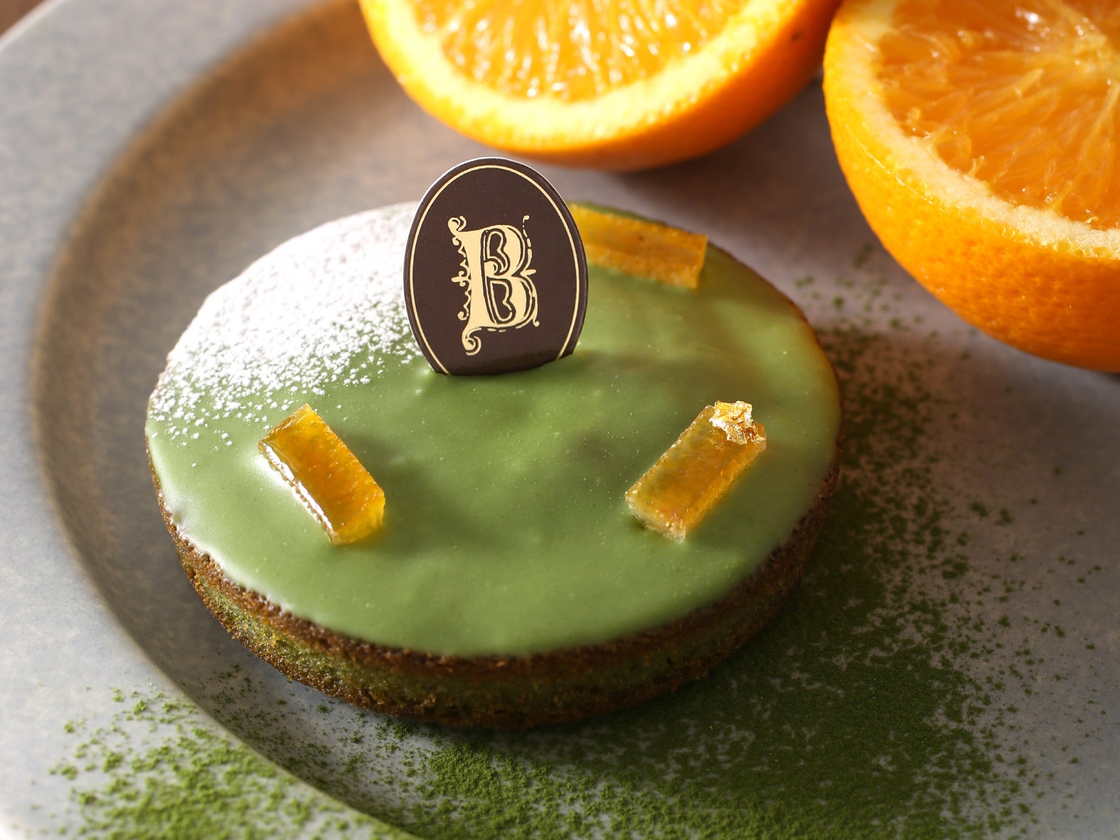 香り高い抹茶生地に爽やかなオレンジを合わせ、抹茶とホワイトチョコのフォンダンで仕上げました。