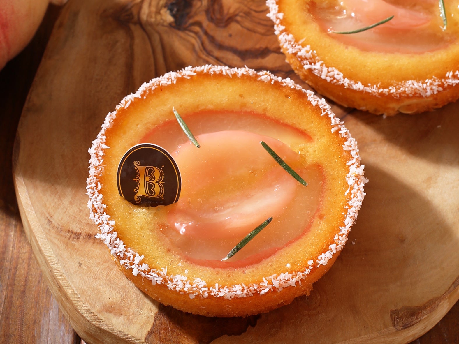 白桃の甘い香りをとじ込めた贅沢な味わい。ココナッツで夏らしいアクセントを添えました。