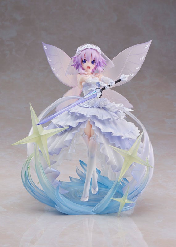 シェアクリスタルの輝きに包まれたネプテューヌが純白のドレス姿となって顕現した “リトルパープル”を1/7サイズで立体化! 儀礼剣を携えた神秘的な佇まいを忠実に再現。キリリとした差し替え表情パーツが付属。髪飾り・スカート部は脱着可能。ブロッコリー製(原型制作:ほのか、原形制作協力:株式会社スパロー、彩色:森山奈菜、制作協力:アリスグリント)。