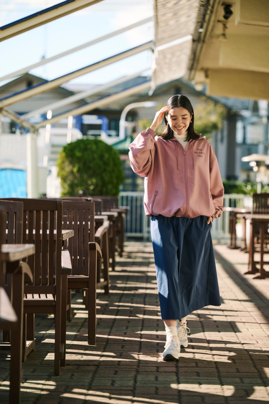 ヘリテージスタイルのオーバーサイズフィットのフルジップジャケットと、フレンチテリーを使用したスウェットジョガーパンツ。ランニングやジムトレーニング、スタイリッシュなデイリーウエアとしてもおすすめ。また、ジャケットに心地よい肌触りのコットンストレッチ素材のスカートを合わせれば、フェミニンな印象の快適なデイリースタイルとして着回しができます。