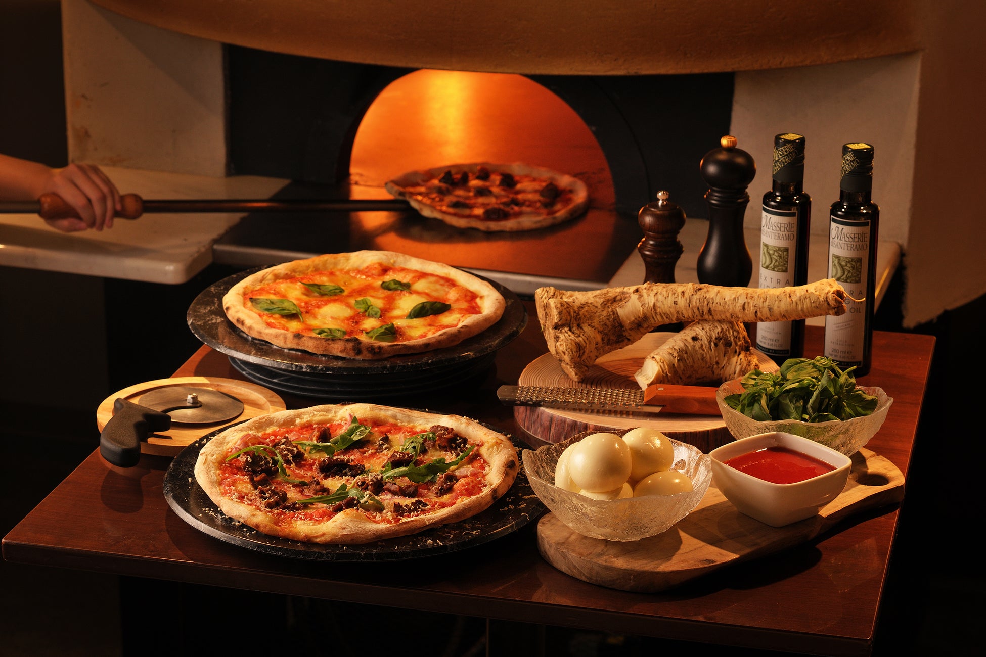 レストラン入口に、チーズ作りの実演を行うライブスタジオが誕生します。ライブスタジオ内では、スタッフがモッツァレラチーズの仕上げを実施。チーズ作りの様子を近くで見て、どのようにチーズができるのか知った後は、目の前で仕上げられたチーズを使用した熱々のピッツァを、店内で堪能できます。