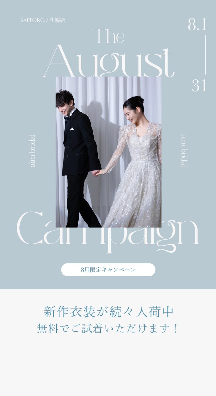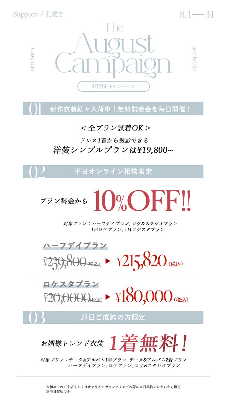 【aim札幌店】8月限定お得なブライダル・ソロキャンペーン情報!