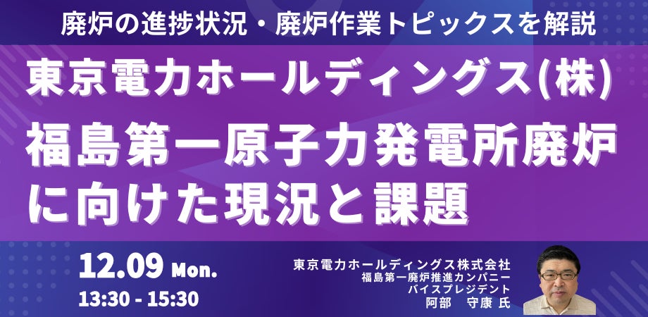 バイスプレジデント 阿部 守康 氏を招聘し、福島第一原子力発電所廃炉に向けた現況と課題について詳説いただくセミナーを開催します。
