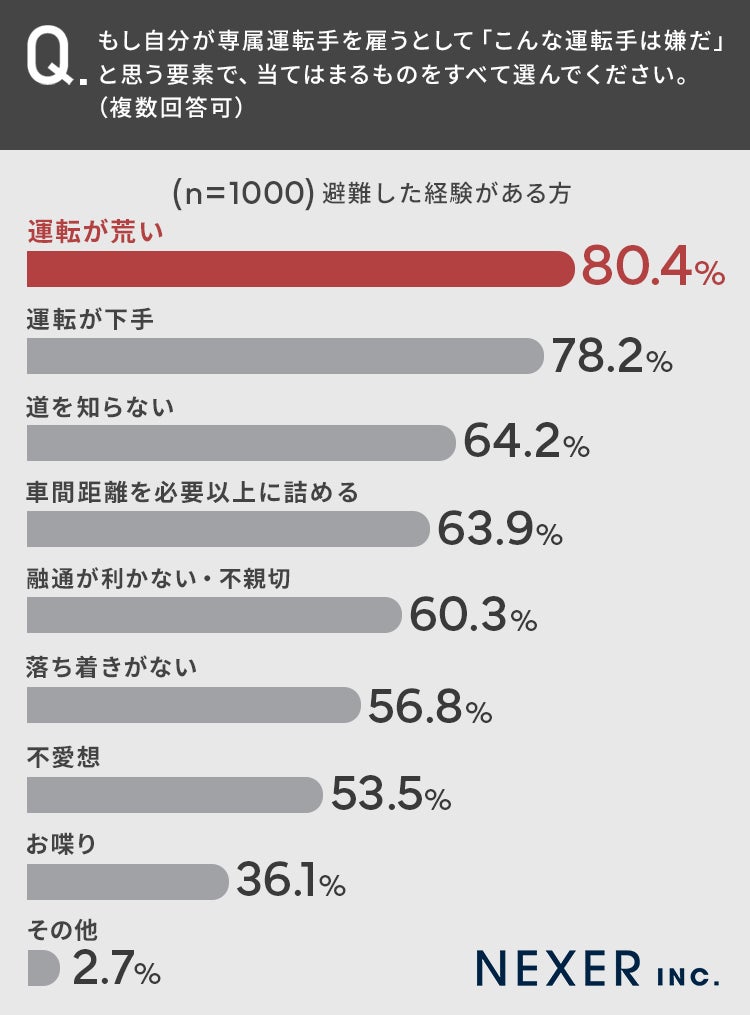 ■80.4%が「運転が荒い」運転手は嫌