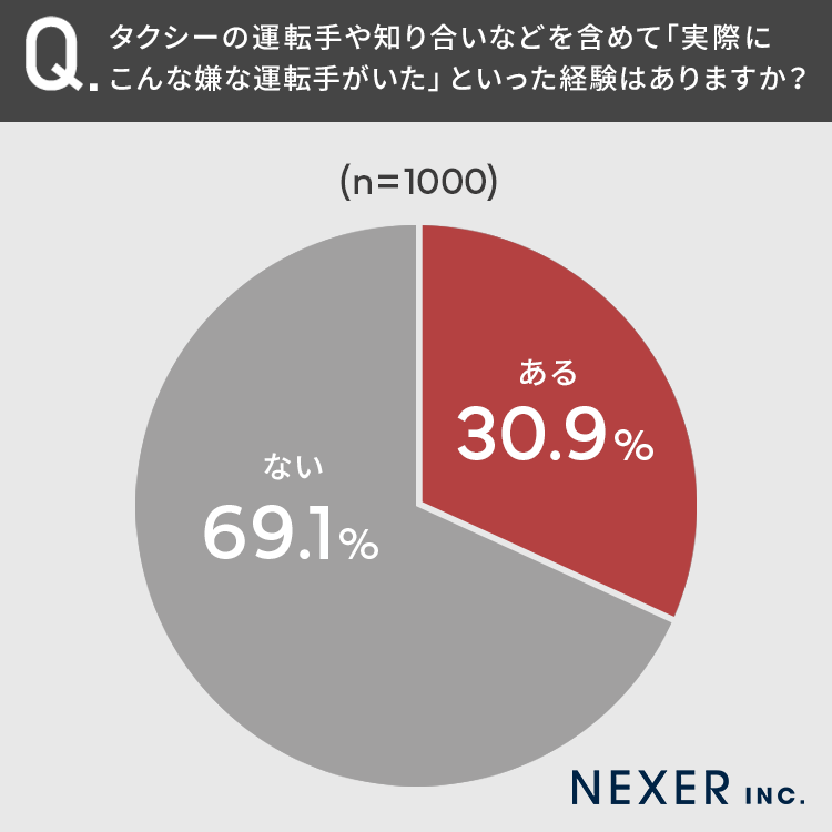 30.9%の方が「実際にこんな嫌な運転手がいた」といった経験が「ある」と回答しています。