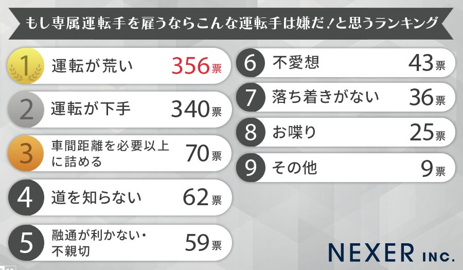 株式会社NEXER・「こんな運転手は嫌だと思う運転手」に関する調査
