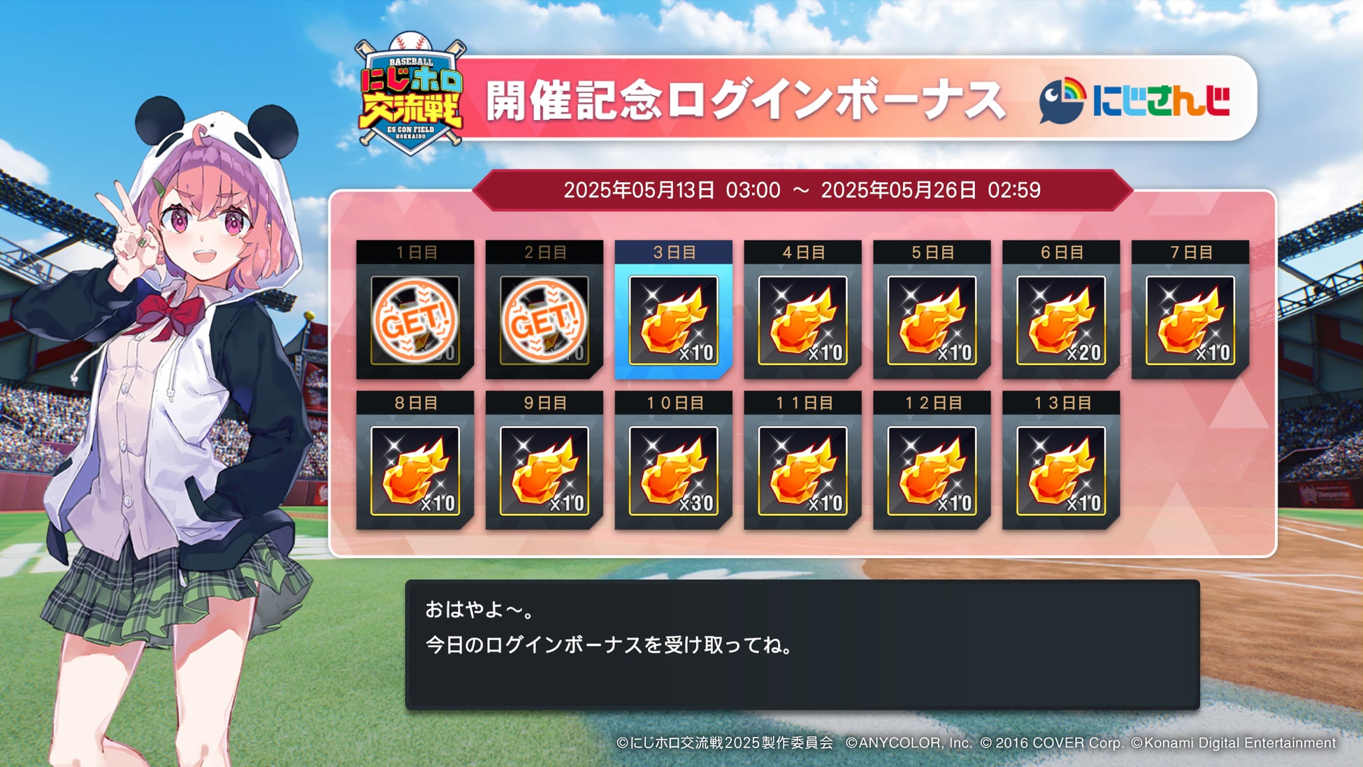 株式会社コナミデジタルエンタテインメントは、発売中の家庭用ゲーム『プロ野球スピリッツ2024-2025』(PlayStation®・Steam®対応)の球団経営モード「myBALLPARK」に、5月に開催されるオフラインイベント「にじホロ交流戦2025」のチェアマンと監督達が5月7日(水)から期間限定で登場することをお知らせします。