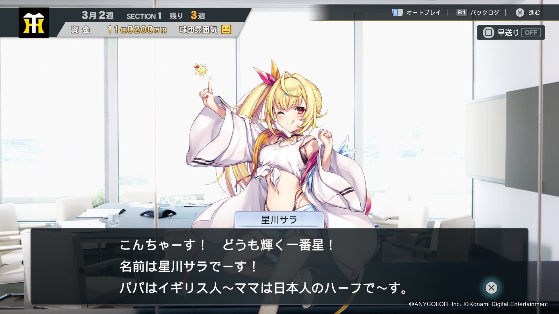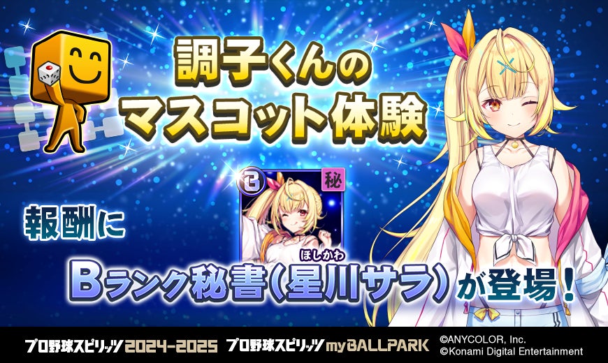 このイベントの開催を記念して、星川サラ、リゼ・ヘルエスタ(にじさんじ所属)、兎田ぺこら、天音かなた(ホロライブ所属)の4名が球団経営モード「myBALLPARK」に秘書役として登場します。