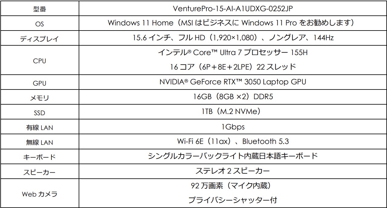 https://jp.msi.com/Business-Productivity/VenturePro-15-AI-A1VX