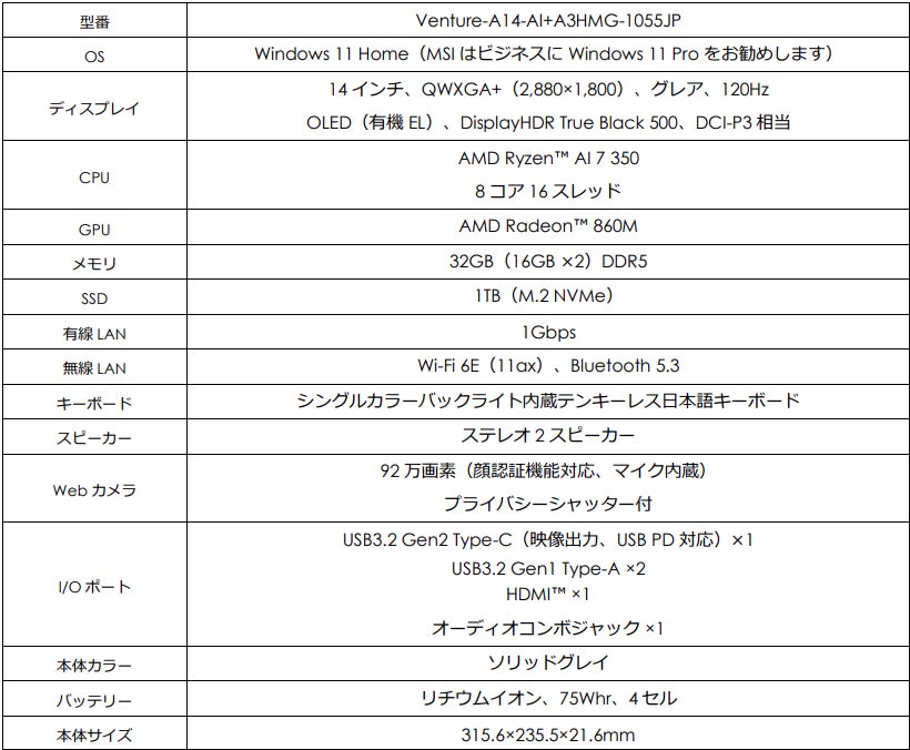 https://jp.msi.com/Business-Productivity/Venture-A14-AI-Plus-A3HMX