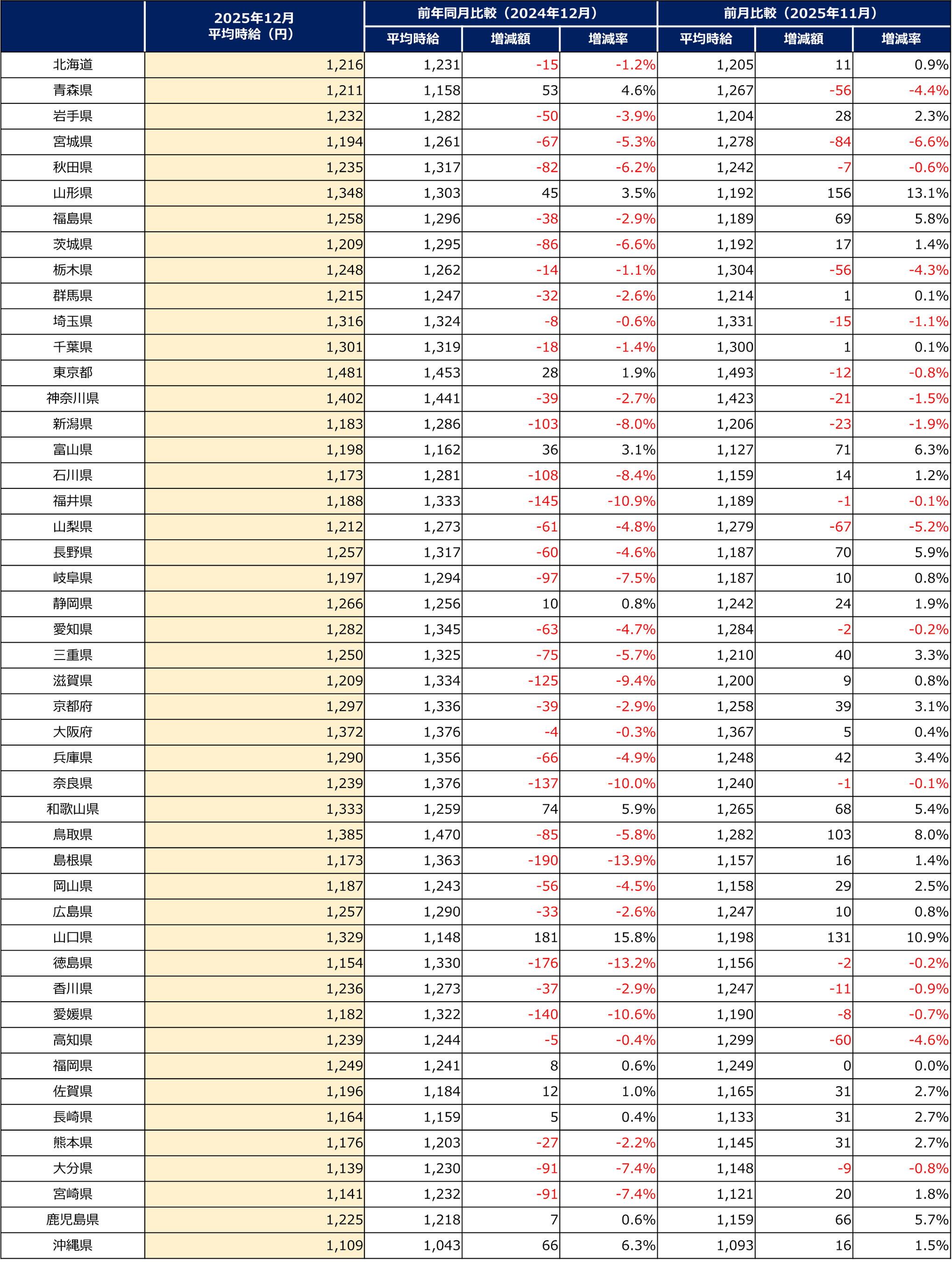 全国 募集時平均時給調査(2025年12月度)
