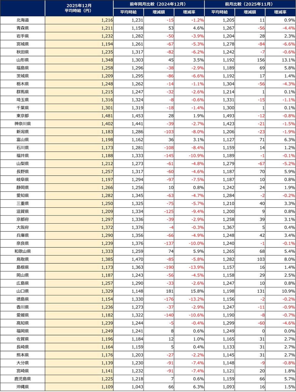 全国平均時給、前年同月・前月比でプラス。三大都市圏平均はいずれもマイナスに。