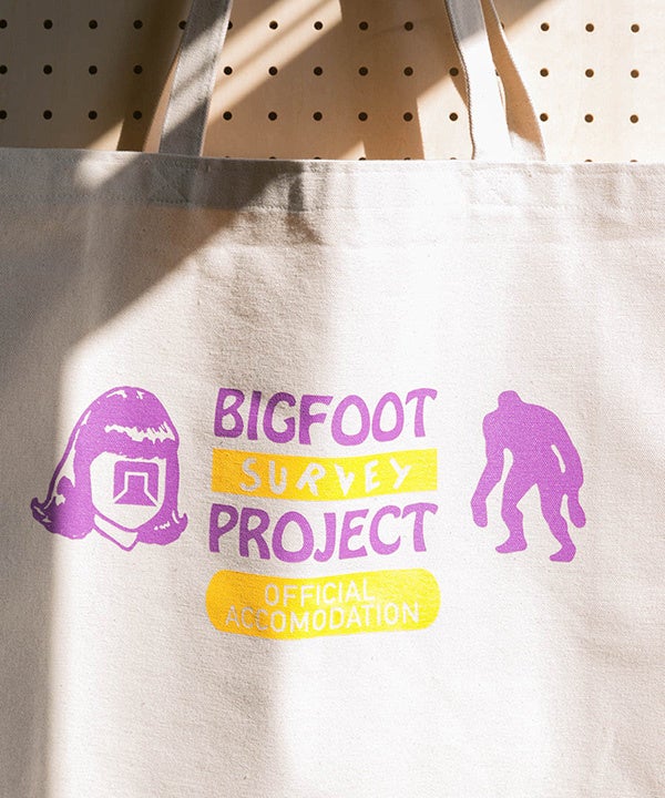 「BIGFOOT SURVEY PROJECT」のプリントロゴをデザイン。A4サイズも収納可能で、マチも設けていて見た目以上に容量があります。メンズレディース問わずおすすめです。