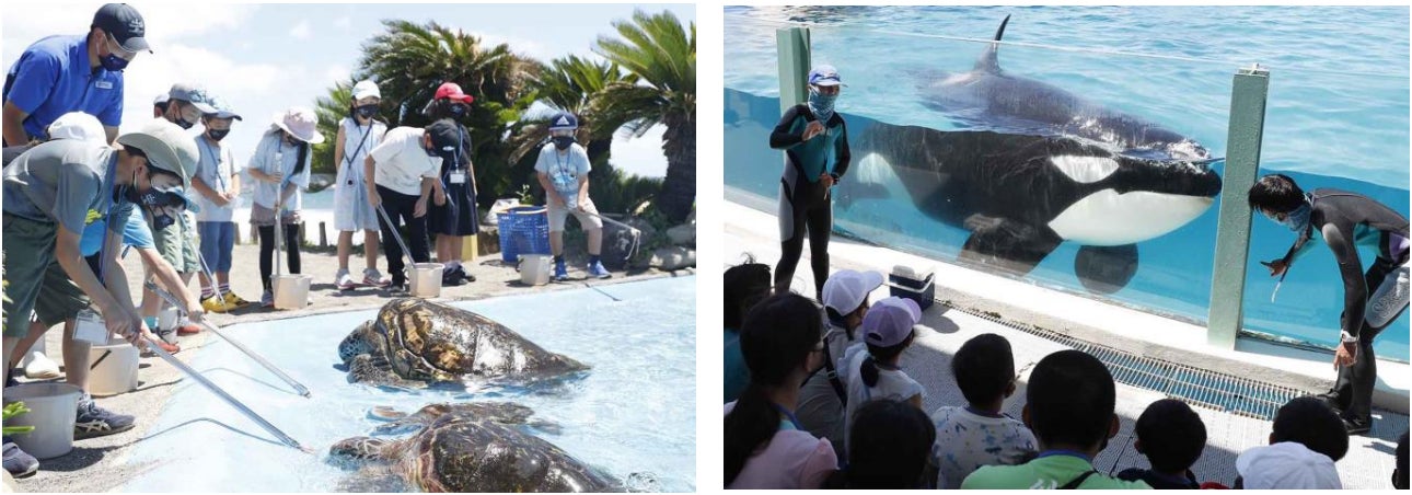 「サマースクール」は、鴨川シーワールド開業当初の1973年から開催している、小学生を対象とした学習プログラムで、今年で49回目を迎えます。当プログラムでは、海の生き物についてのレクチャーを受けるだけでなく、シャチやイルカを間近で観察したり、ヒトデやヤドカリなどに触れたりと、本物の生き物とのふれあいを通して楽しく学ぶことができるため大変人気が高く、毎年多くの子どもたちが参加しています。また、プログラムの中で動物を観察する時には担当の飼育員が解説を行うので、気になることがあればその場で質問をすることができ、飼育員と気兼ねなく会話ができることも人気の理由となっています。