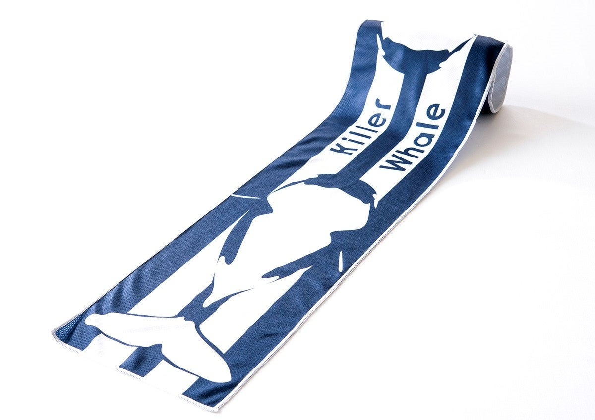 さらに、「水のいきものとのふれあいコース」と題し、広い館内を巡り、屋外のシャチやイルカの観察やウミガメの給餌体験をするにあたり、今回は暑さ対策の一つとして、オリジナル冷感タオルを参加者全員にプレゼントします。シャチの模様がデザインされたおそろいのクールなタオルを首に巻き、プログラムに参加します。