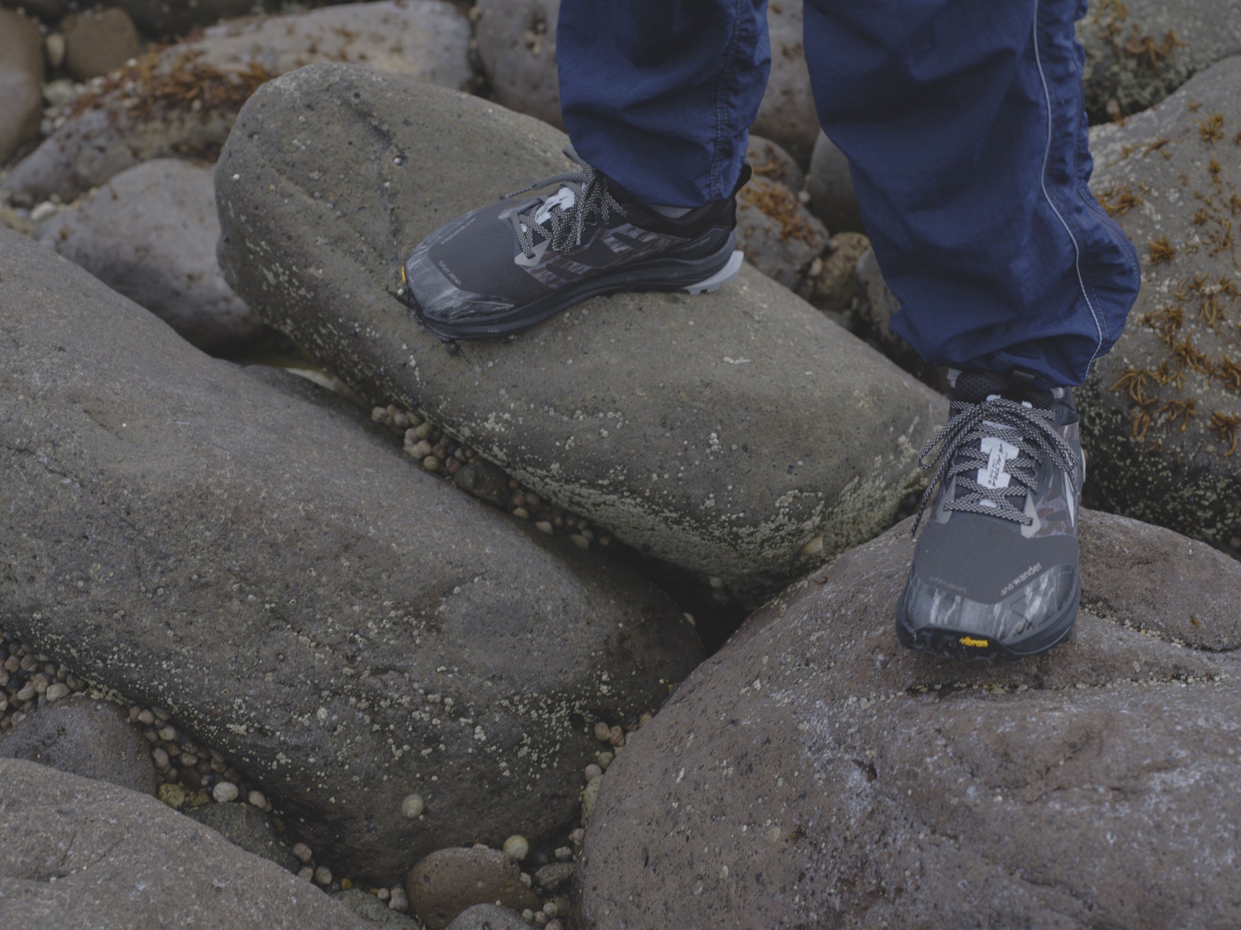 「Altra × and wander Lone Peak 9+」は、and wanderが手掛けたオリジナルのグラフィックプリントやカラーリングを特徴としながら、Vibram® Megagripを搭載することで、険しい地形でも確実なグリップ力を発揮します。Lone Peakにグラフィックが施されるのは今回が初めてであり、両ブランドのクリエイティビティーにおける新たな一歩となります。
