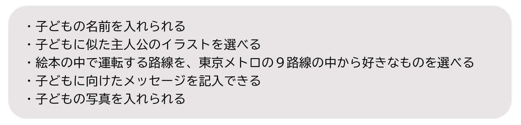 子どもが東京メトロの運転士になれるパーソナライズド絵本 概要