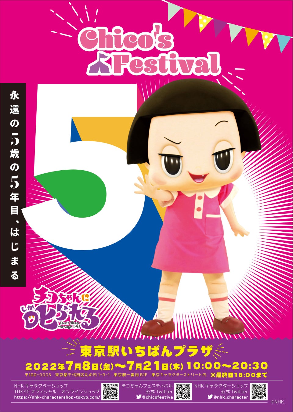 NHKの人気番組「チコちゃんに叱られる!」の放送5年目を記念した「チコちゃんフェスティバル」が開催決定!2022年7月8日(金)より東京駅いちばんプラザにて