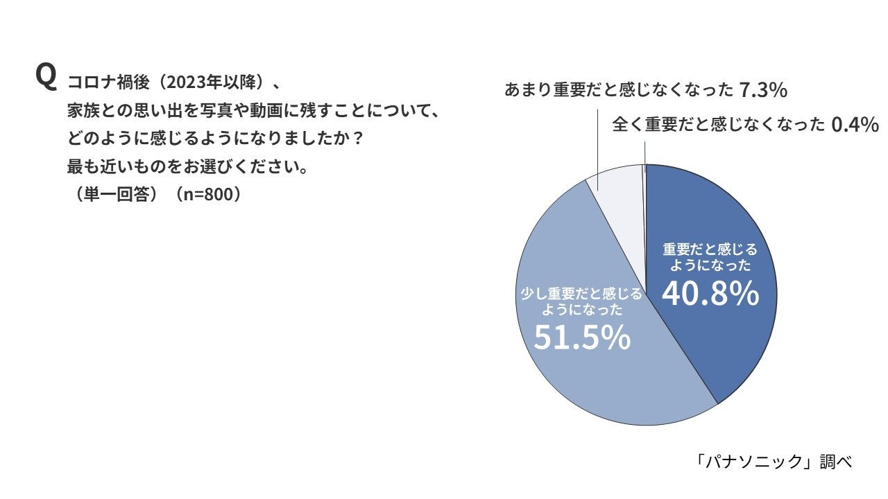 《コロナ禍前と比較して家族と過ごす時間が増えた方は7割以上となり、家族との思い出を写真や動画に残すことを重要に感じる方は9割以上に》