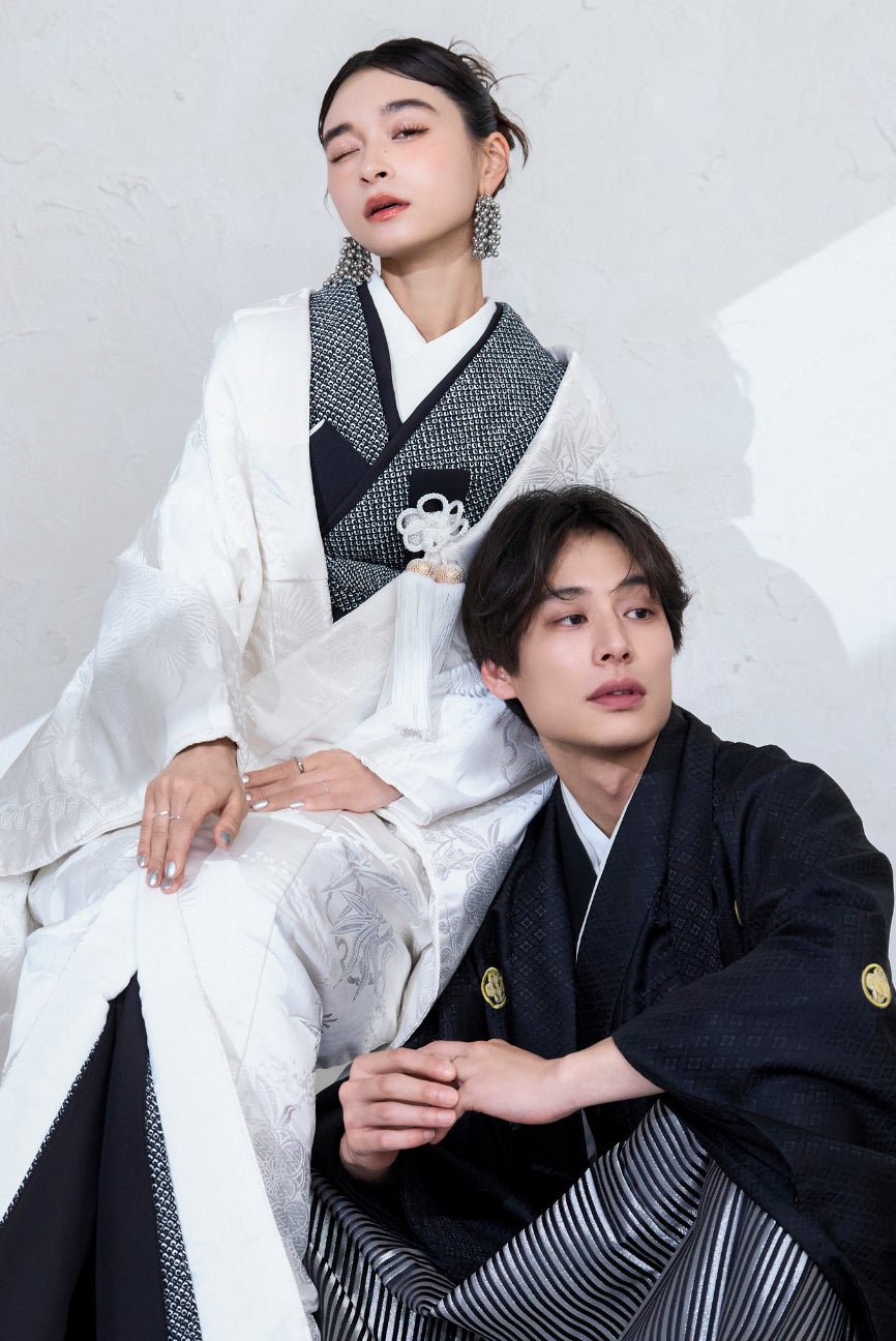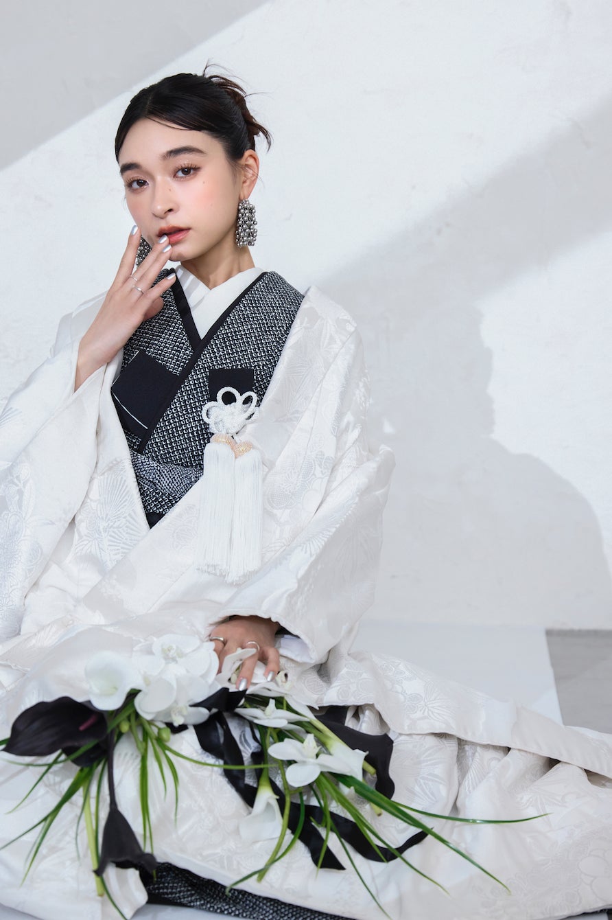 クリエイティブな発想と圧倒的な技術力が人気のフォトスタジオaim東京原宿店から、モノトーンコーデのシックでハイセンスな和装ウェディングフォトをご紹介いたします。