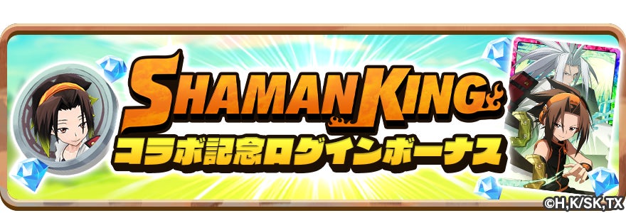 本コラボを記念して、『SHAMAN KING』をモチーフにしたコラボモンスター、デュラハン種「麻倉 葉(武装)」とキュービ種「恐山 アンナ」、コラボアシストカード「【ともに歩む未来】麻倉 葉」と「【ふんばり温泉女将】恐山 アンナ」が手に入るガチャイベント「SHAMAN KINGコラボフェス」を開催します。「SHAMAN KINGコラボフェス」では、★3モンスターの出現確率が15%→20%にアップします。
