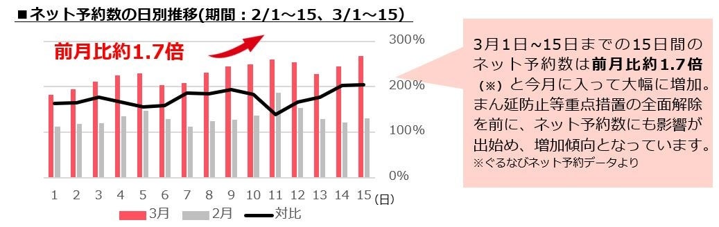 3月のぐるなびのネット予約数は前月比で約1.7倍に