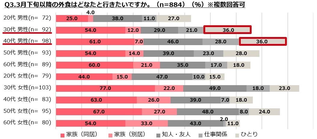 ・同伴者は「同居家族」と「友人」が多く「ひとり」が高いのは30~40代の男性。