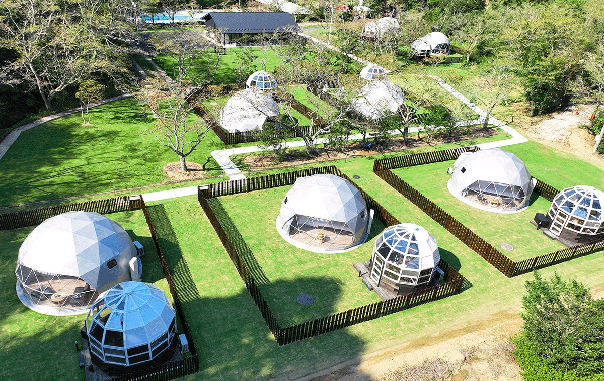 小型犬から大型犬まで家族の一員であるワンちゃんと、笑顔で楽しい時間を過ごしていただけるグランピング施設。ノーリードで過ごすプライベート空間、ドッグランなどワンちゃんのために用意された設備、粟津温泉郷の美肌の湯と地場産の旬の食材を使ったお食事など体験をお楽しみいただけます。