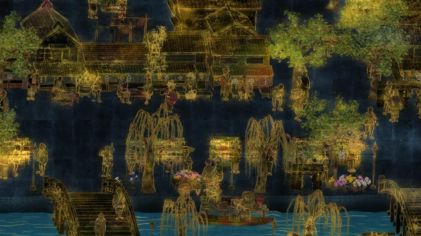 《不可逆の世界》は、鑑賞者のふるまいの影響を受けるインタラクティブな作品です。鑑賞者が作品世界の人々に触れると、人々は反応しますが、人々はまた日常へと戻っていきます。しかし、人々に連続的に触れると、争いが町全体に広がり、町は火に包まれます。 そして、世界が一度燃えはじめると、燃える前の元の姿を二度と見ることはできません。 鑑賞者自身が、その不可逆な変化の当事者となるのです。
